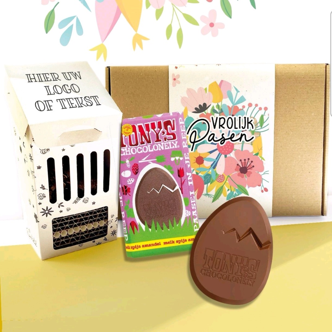 Wordt speciaal voor Pasen geleverd met een Tony Chocolonely paasreep.