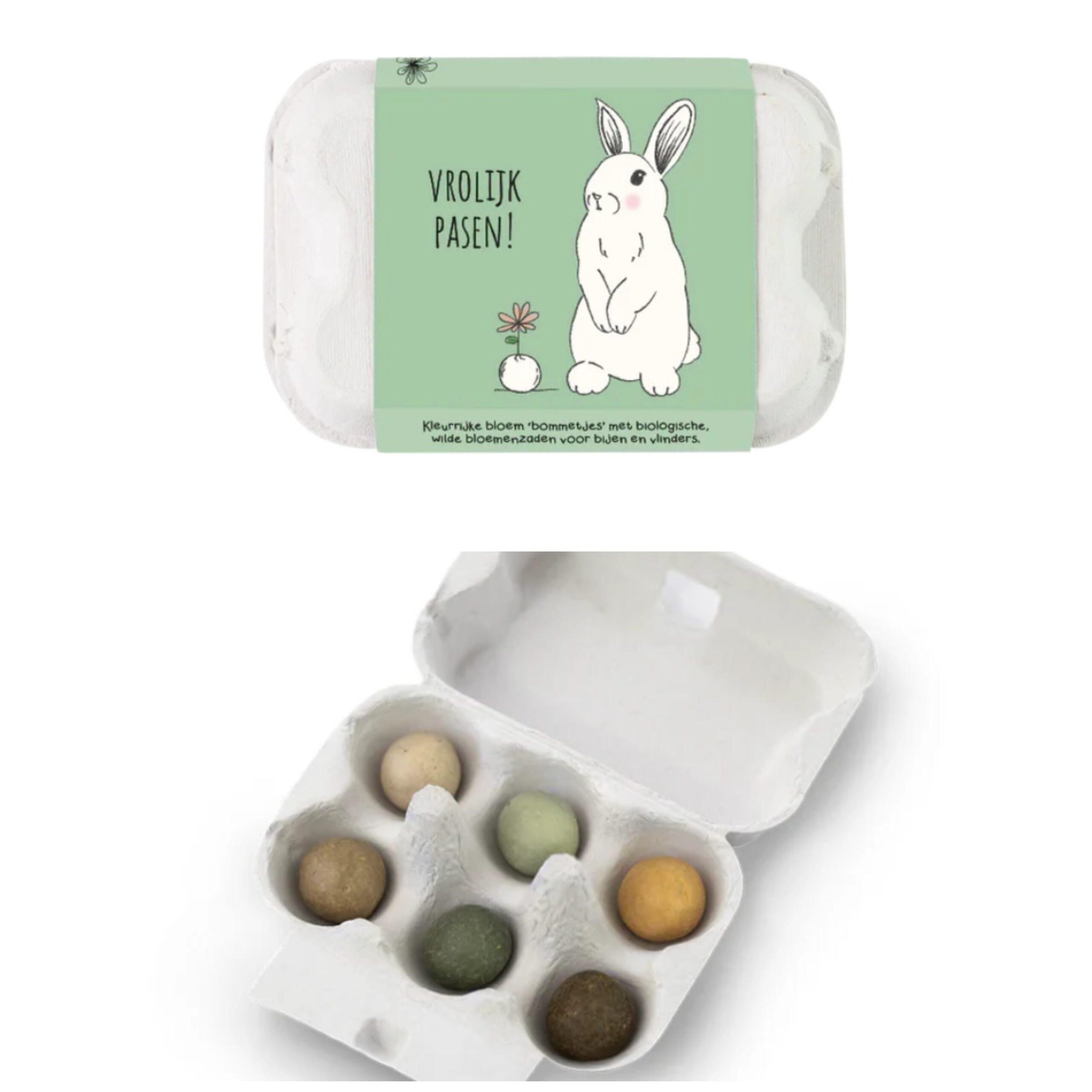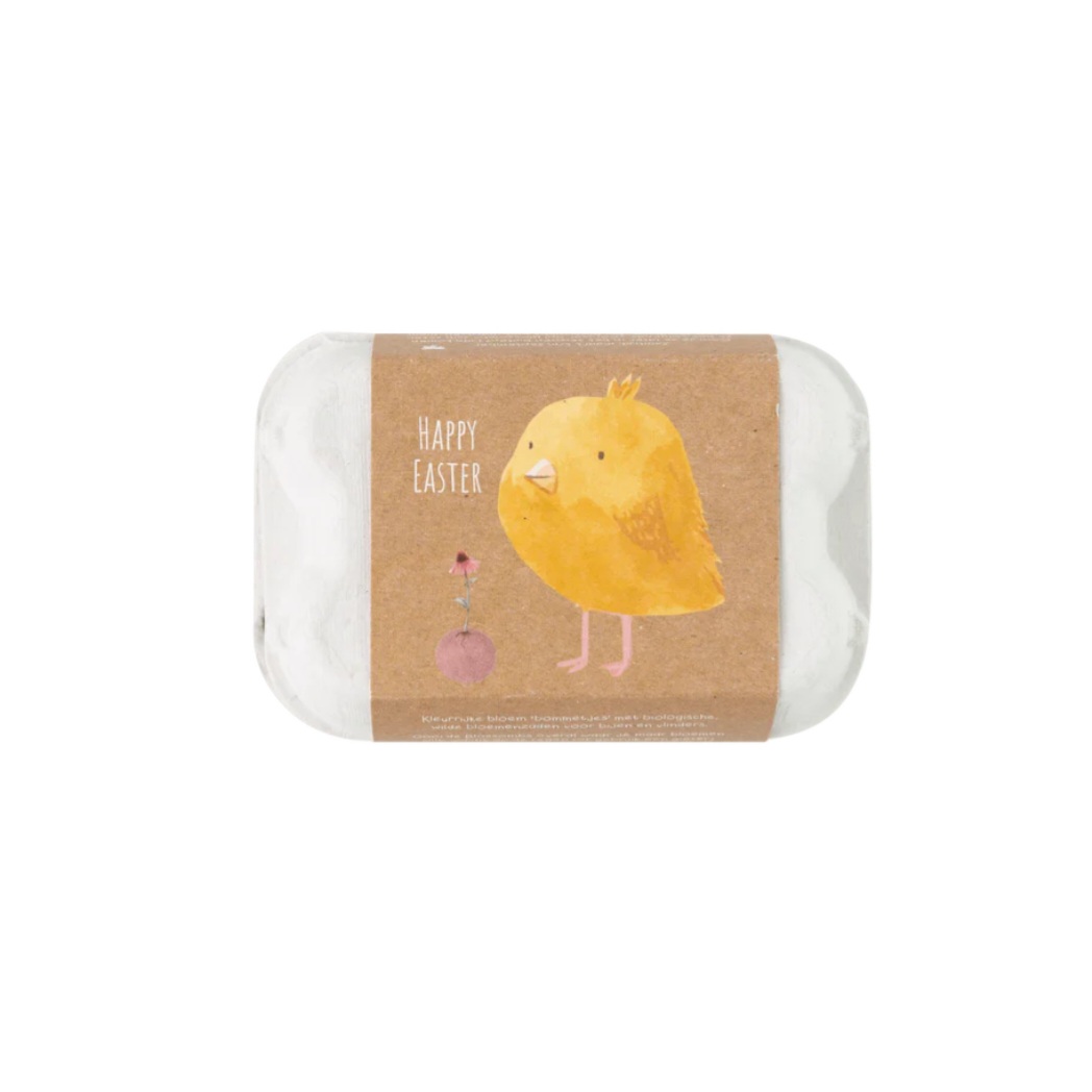 Vier Pasen anders dit jaar: Verstop zaadbommetjes in plaats van eieren! In dit eierdoosje zitten 6 gekleurde zaadbommetjes die een bloemenzee en voedselparadijs creëren voor bijen en vlinders. Verspreid ze in je tuin, op een braakliggend stukje grond of in een pot op je balkon. Let op, het eierdoosje past niet door de brievenbus.