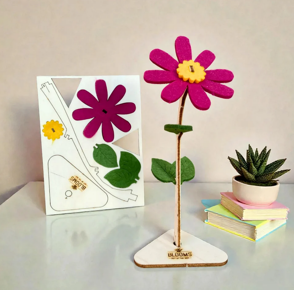 Een klein bedankje dat persoonlijk aanvoelt, maar professioneel blijft. Deze bloem bestaat uit een hout-en-vilten DIY-bloem, bevestigd op een houten kaart in A6-formaat. Hoe het kleine bedankje wordt verstuurd, hangt af van jouw keuze: