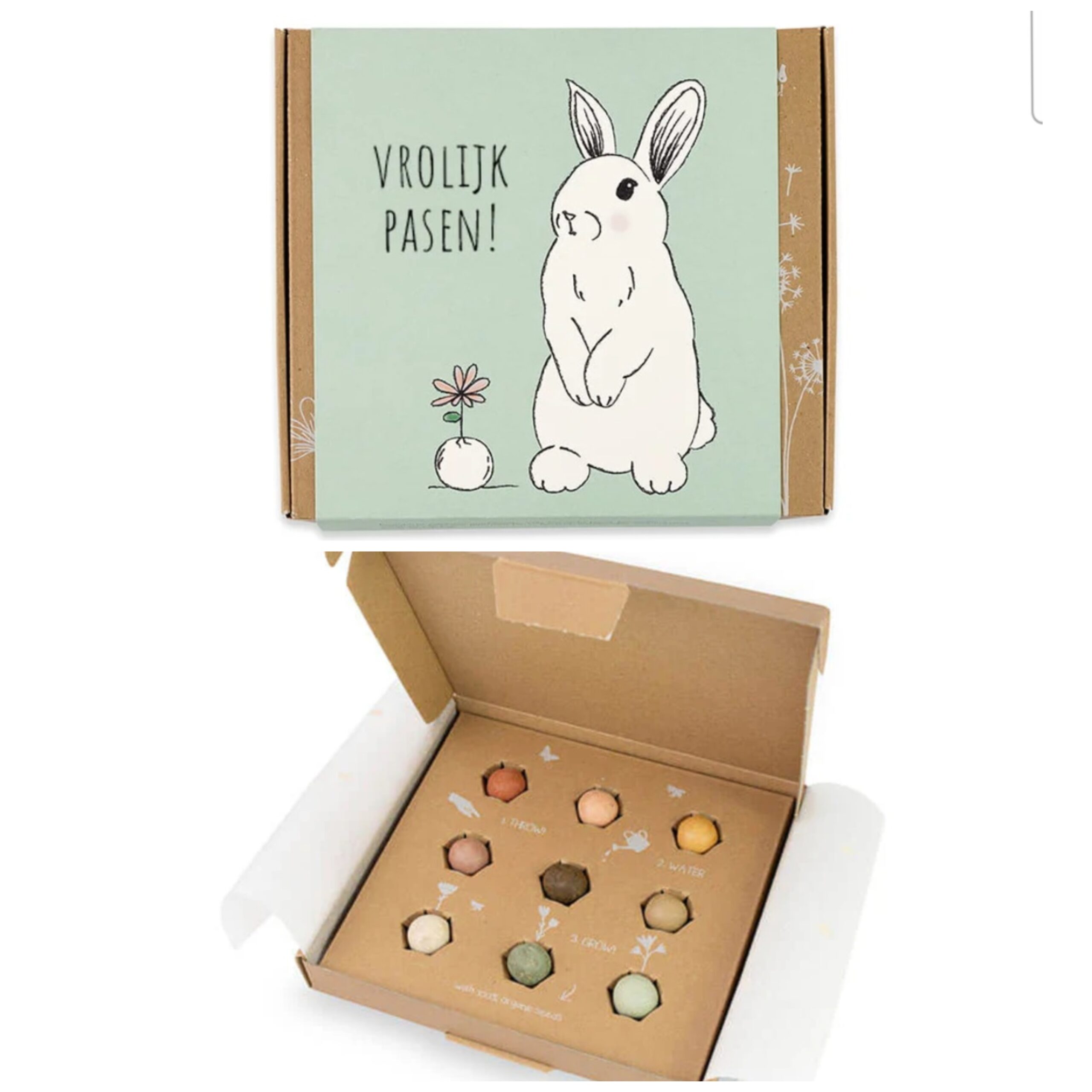 Dit keer geen paaseieren zoeken, maar zaadbommetjes strooien tijdens Pasen! In dit vrolijke doosje zitten 9 gekleurde zaadbommetjes die een bloemenzee en voedselparadijs creëren voor bijen en vlinders. Verspreid ze in je tuin, op een braakliggend stukje grond of in een pot op je balkon.