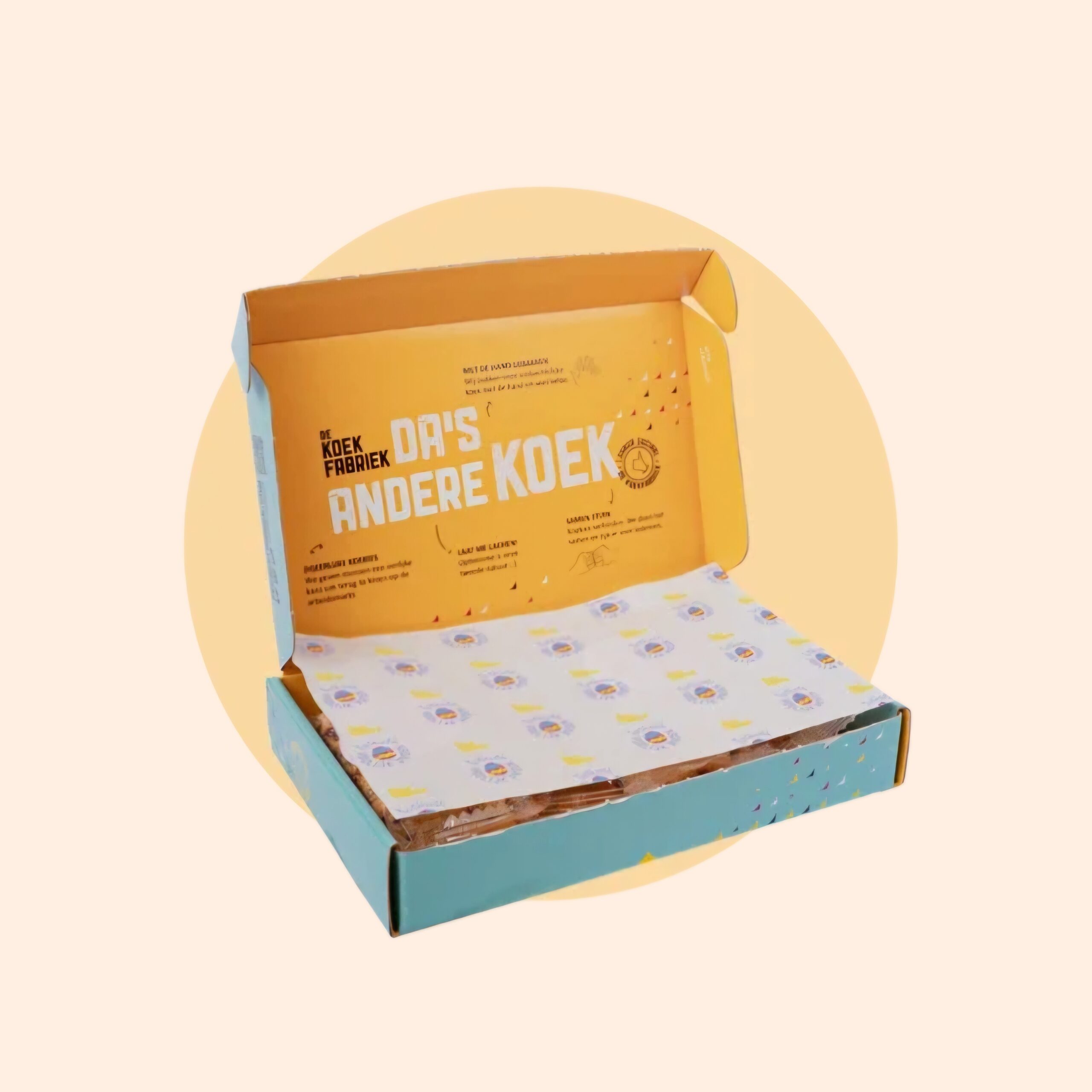 Dezelfde verse paaseikoekjes in vanille/chocoladesmaak, maar dan in een tray van 100 gram. Om je vingers bij af te likken, zo lekker! De tray past precies in een vrolijk brievenbusdoosje met nieuw feestelijk Pasen vloeipapier.